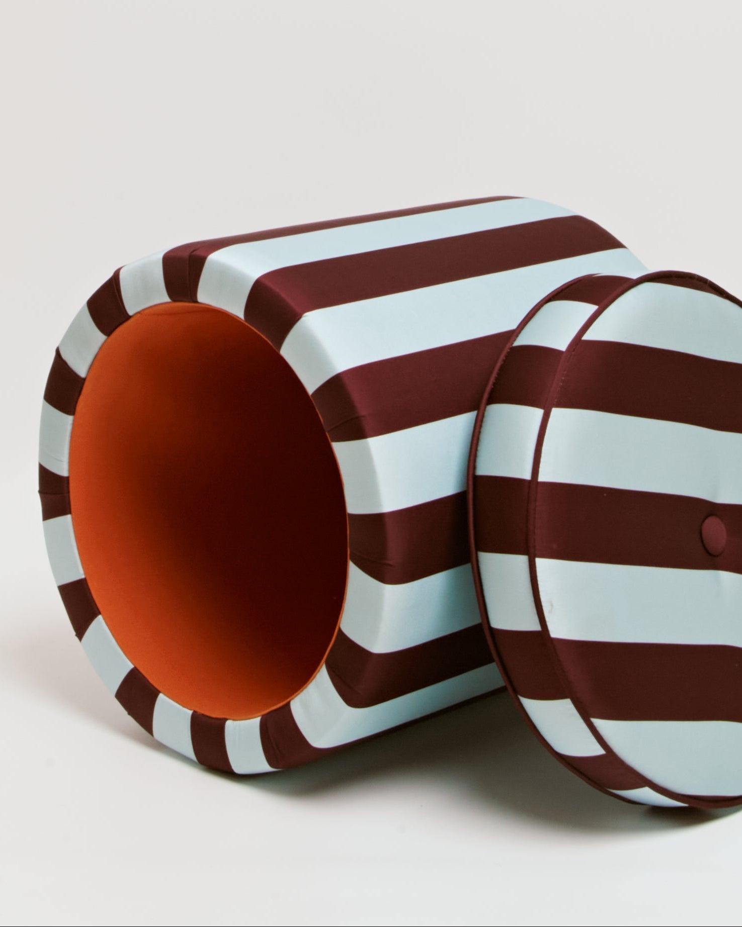 Pouf Listrado Rosa Vintage & Vinho Tinto